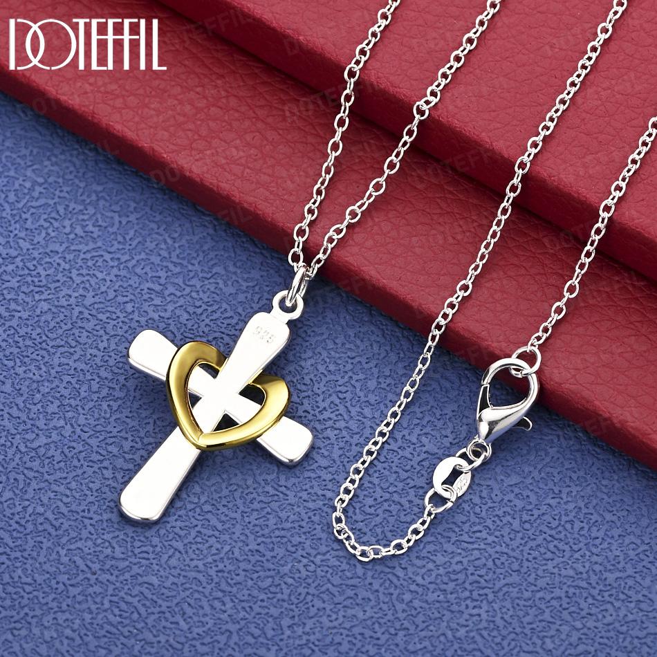 925 Sterling Silver Fashion Jewelry 18-inch Heart-Shaped Cross Pendant Necklace