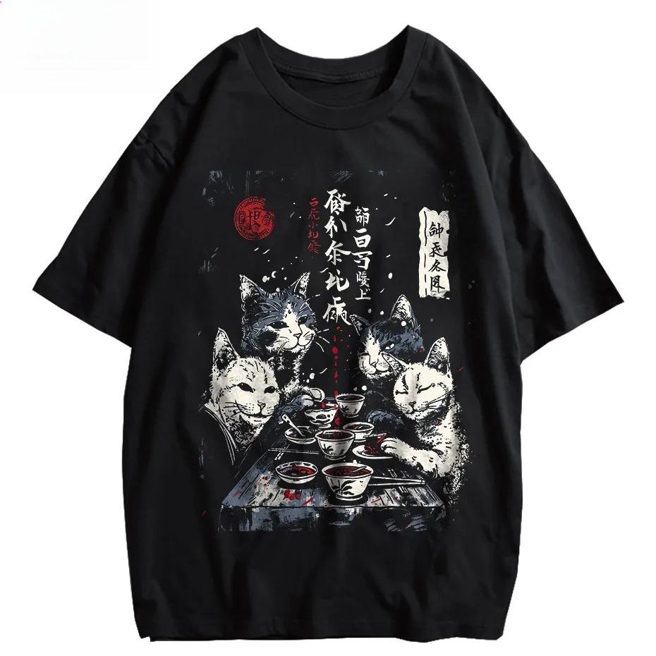 New Funny Cat Cartoon Graphic Men Women Tees Casual Baggy Short Sleeve Japanese Style Oversized T ShirtPersonalized Clothing