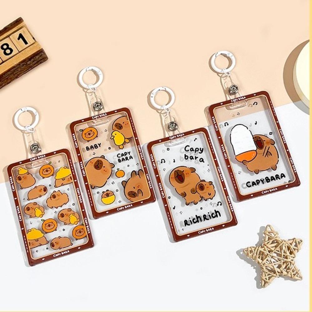 Cute Cartoon Capybara Photocard Holder Transparent with Lanyard Photo Protector Case Keychain Card Cover Photo Storage