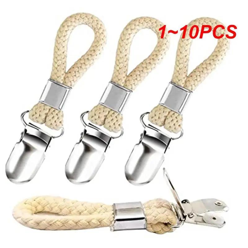 1~10Pcs Bathroom Towel Clips Braided Cotton Towel Clip With Metal Clamp For Home Bath Area Cooking Room Storage Pegs