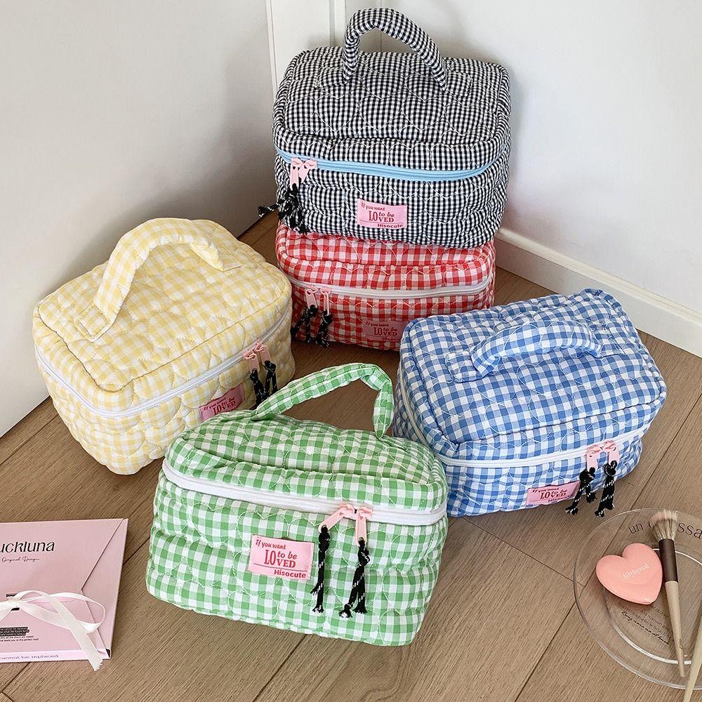 1. Korean plaid elements: Adopting classic Korean plaid design, with soft colors (such as pink and white, light blue, mint green, etc.), paired with simple lines, instantly enhance the overall girlish feel, suitable for girls who pursue sweet style.