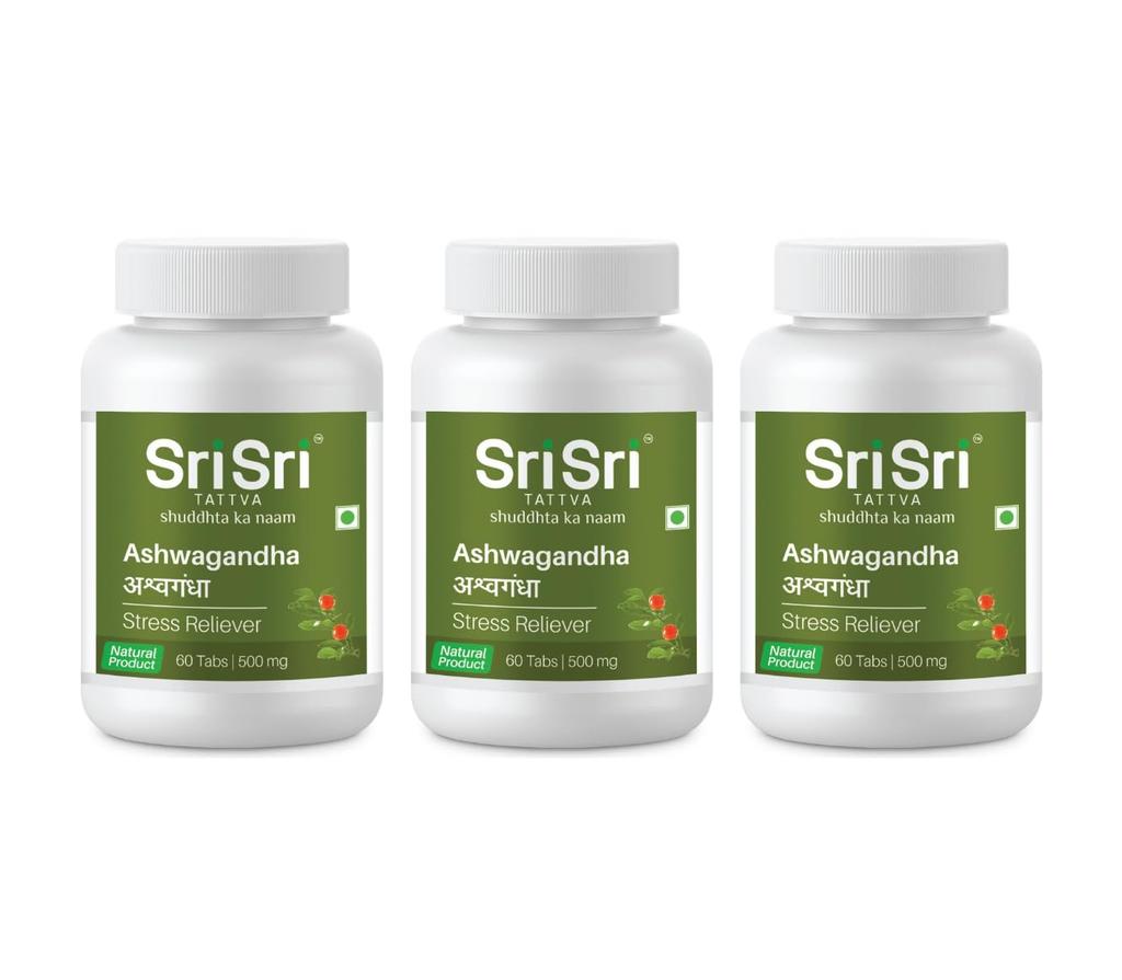 Sri Sri Tattva Ashwagandha 60 Tablets 500 Mg Herbal Wellness Supplement For Daily Vitality Focus Balance Pack Of 3