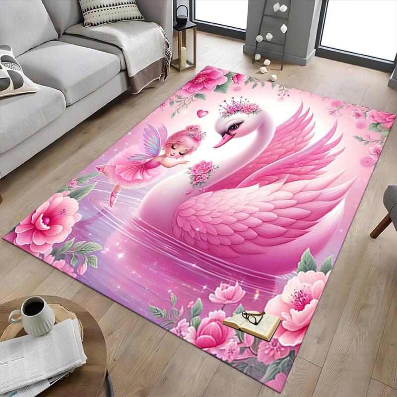 1PC Swan Fairy Extra Large Non Slip Floor Carpet, Office, Family, Studio Large Area Rug Indoor Rugs, Bold Statement Piece