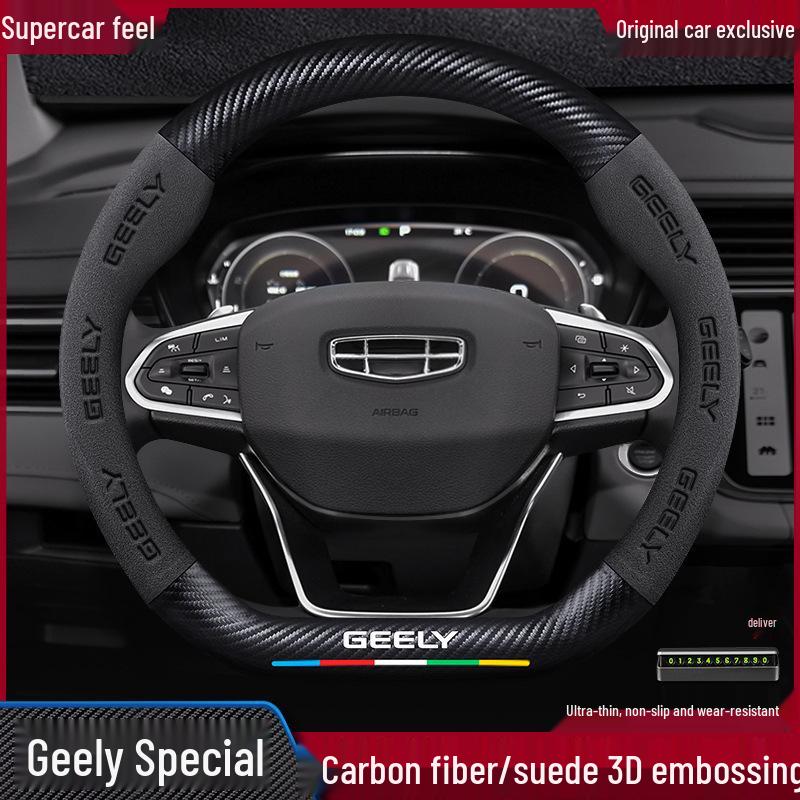 Suede Carbon Fiber Steering Wheel Cover for Geely Boyue L/X, Binyue Cool, Binrui, Haoyue 2022