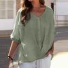 Women's Loose Fit Casual V Collar Cotton Linen Short Sleeve Shirt Top