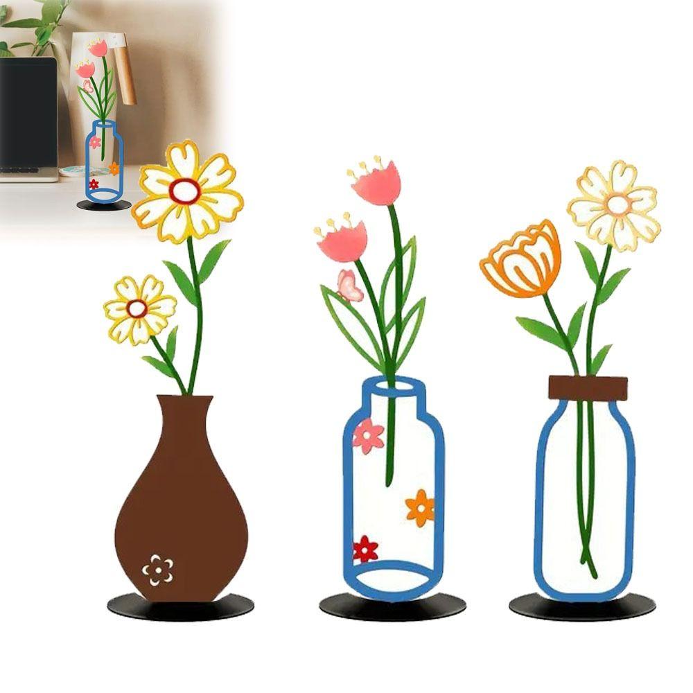 1/3Pcs 2D Flat Flower Vase Ornaments Color Printed Art Decor Crafts Decorative Ornaments Metal Vase Decorative