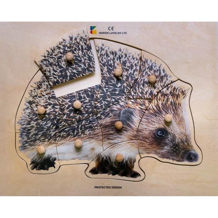 Puzzle en bois le hérisson - bsm - 10 pièces - encastrement à gros boutons pour les plus petits