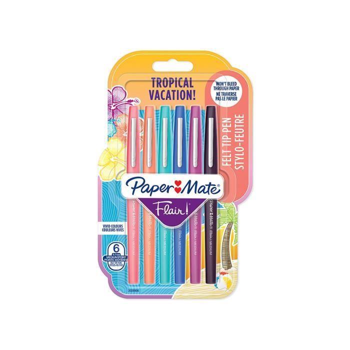 Paper mate flair tropical vacation - 6 feutres - assortiment de couleurs - pointe moyenne 0.7mm
