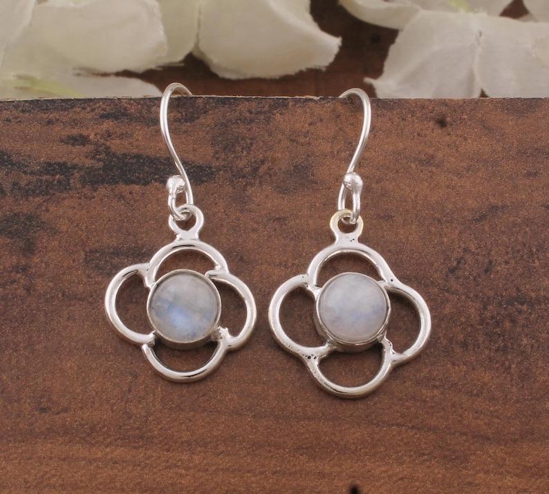 Solid 925 Sterling Silver Moonstone Gemstone Dangle Drop Earrings Women Earrings