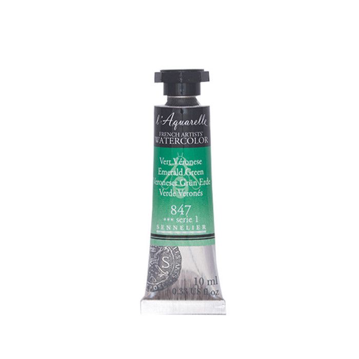 Watercolor Paint - Sennelier - 10ml Tube S1 - Emerald Color (847) - High Quality - Mixed