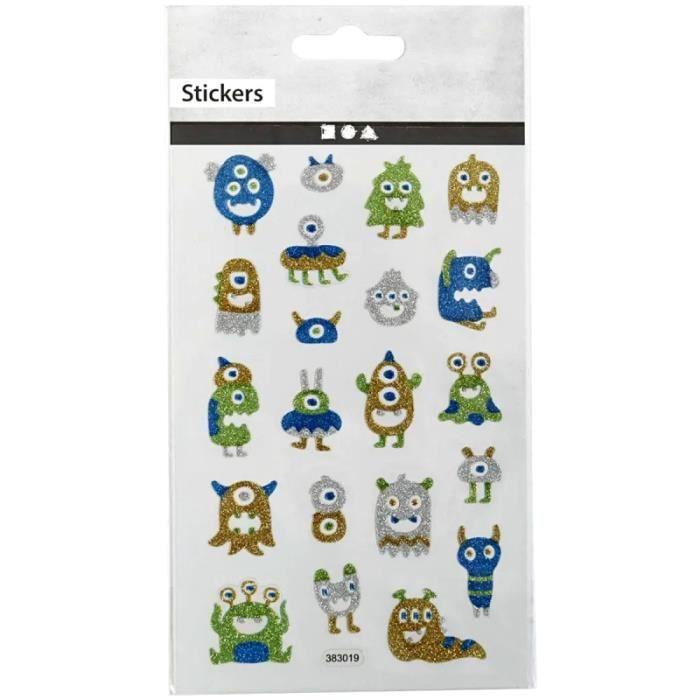 Glitter Stickers - Monsters - 21 Pcs - 0.5 To 2.8 Cm - Mixed - Child