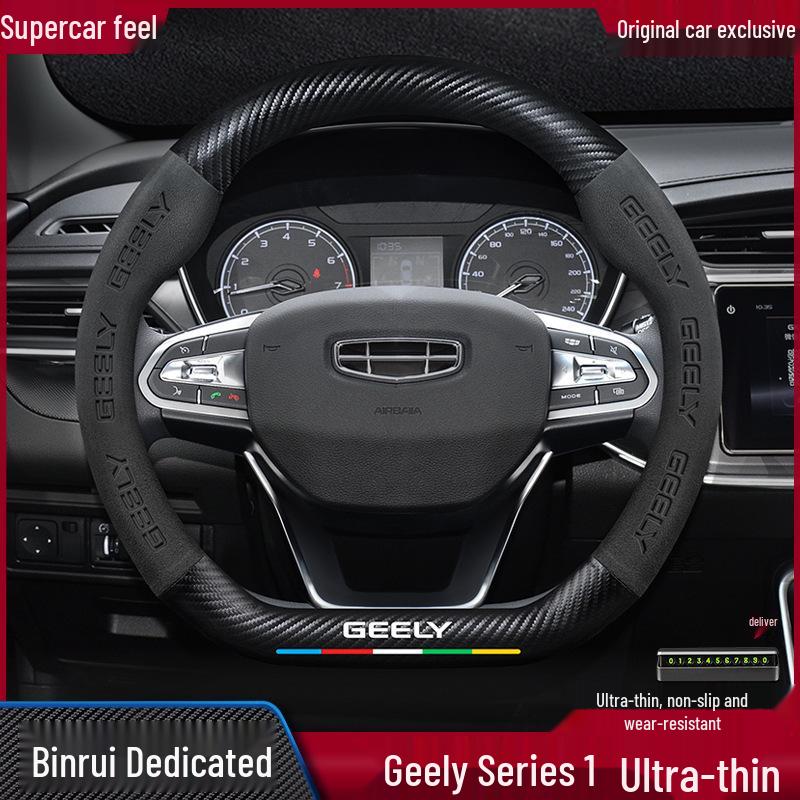 Genuine Leather & Suede Steering Wheel Cover for Geely Binrui Cool (2018-2022), All-Season, Carbon Fiber Handle Design