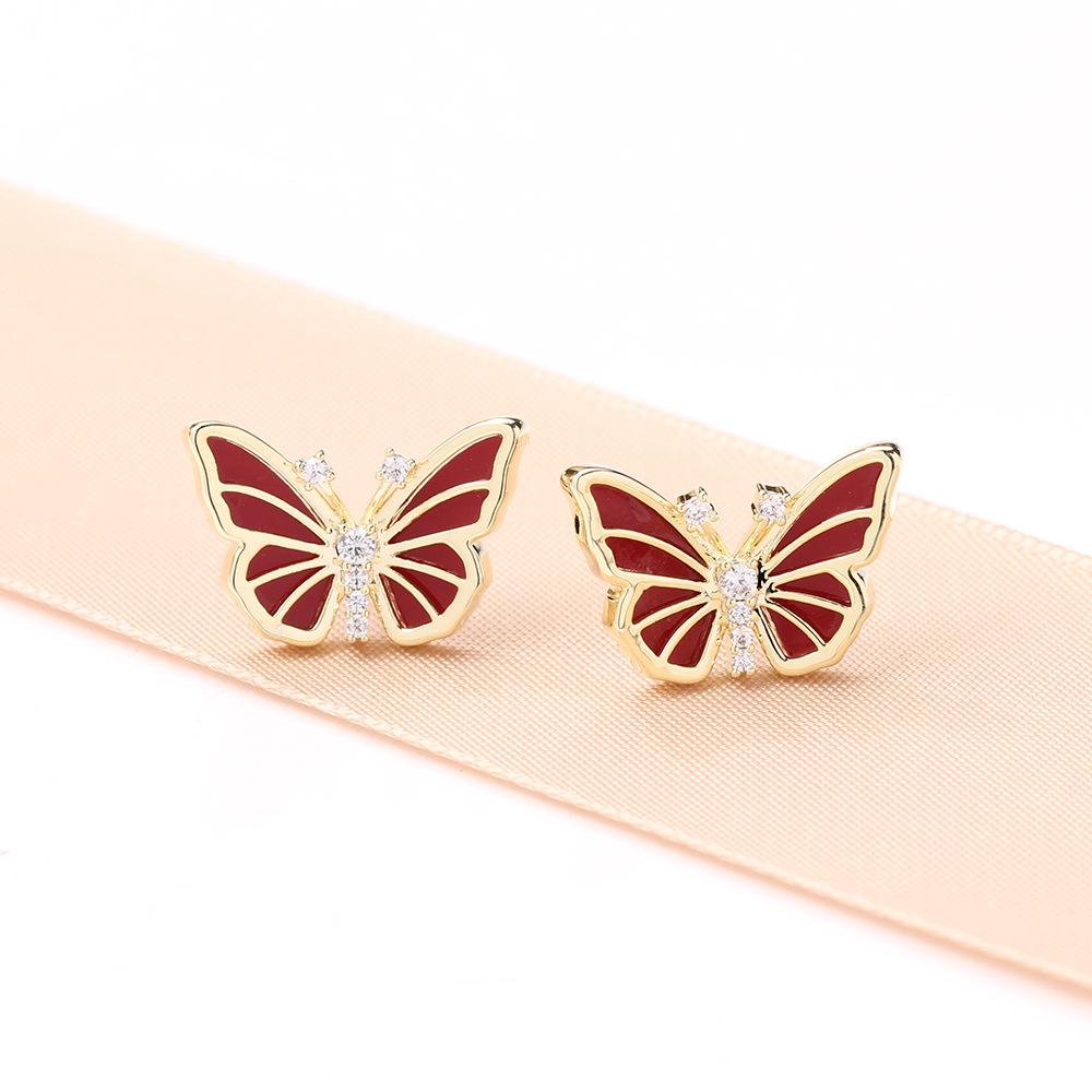 New Year's Red Oil Drip Stone Butterfly Earrings Gold-plated Versatile Insect 925 Silver Needle Stud Earrings Women's Earrings