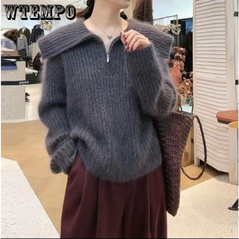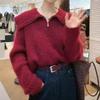 Thick and Loose Design Half Zipper Knitted Sweater Top Knitted Sweater for Women