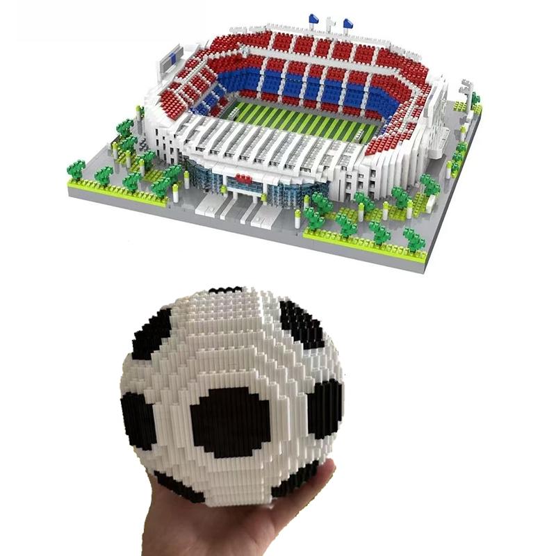 Camp Nou Club Diamond Football Field Bricks Famous Architecture Building Block Toys For Kids Boys Birthday Gifts Desk Ornament