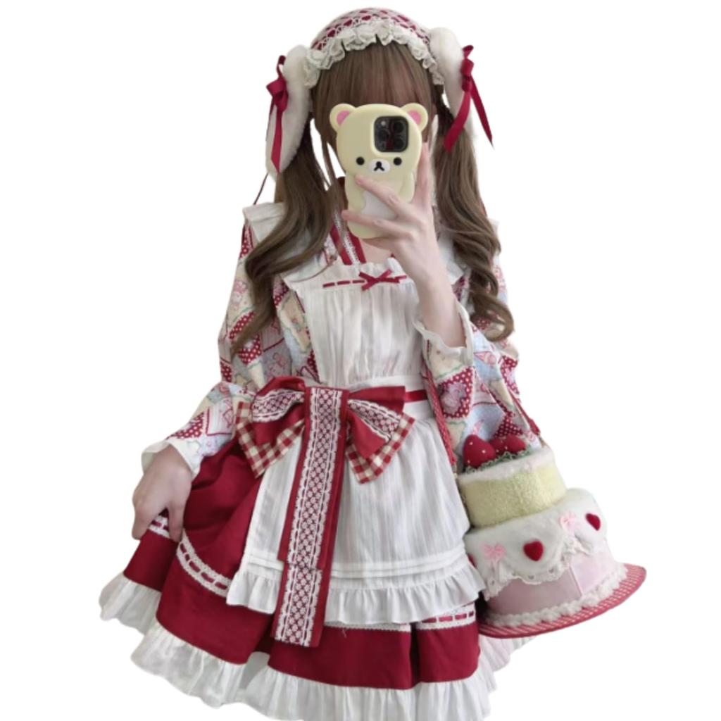 Uccellino Ribbon Japanese Maid Outfit with Moe Sleeves, Lolita Kimono Apron, Halloween Cosplay, Gothic [The Ribbon is the Key Point! Japanese Maid Outfit] This Japanese maid outfit features a striking large ribbon. This cute outfit combines adorable maid-style details with Japanese elements. Recommended for those tired of ordinary maid outfits. [Cute Design] Delicate ruffles, elegant lace, and a charming ribbon will make you look like a fairytale princess. The ribbon sways with every movement. [Includes] Top, skirt, apron, ribbon (petticoat and head dress not included). [Color] Pink/Blue. These classic colors are perfect for Halloween, school festivals, parties, after-parties, and cosplay events. The Japanese motif also matches fireworks and festivals. [Sizes] S: Top length 51cm, sleeve length 64cm, skirt length 41cm M: Top length 51cm, sleeve length 64cm, skirt length 41cm L: Top length 52cm, sleeve length 65cm, skirt length 42cm XL: Top length 53cm, sleeve length 66cm, skirt length 43cm *The chest circumference can be adjusted using the matching collar. 2