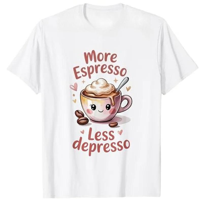 More Espresso Less Depresso Cute Coffee Barista Art TShirt Cozy Coffee Vibes Style Oneck Outfit Life Allmatch Printed Tee