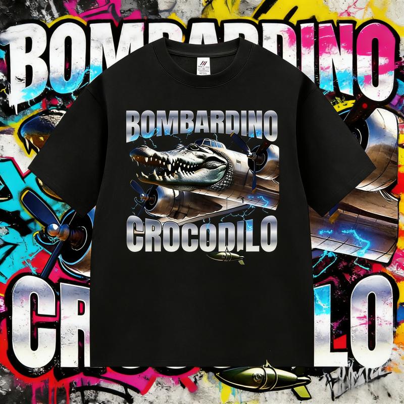 2025Summer Limited Bombardino Crocodilo Funny Meme T Shirt Men Women Summer O-Neck Short Sleeve 100% Pure Cotton Printed T-shirt
