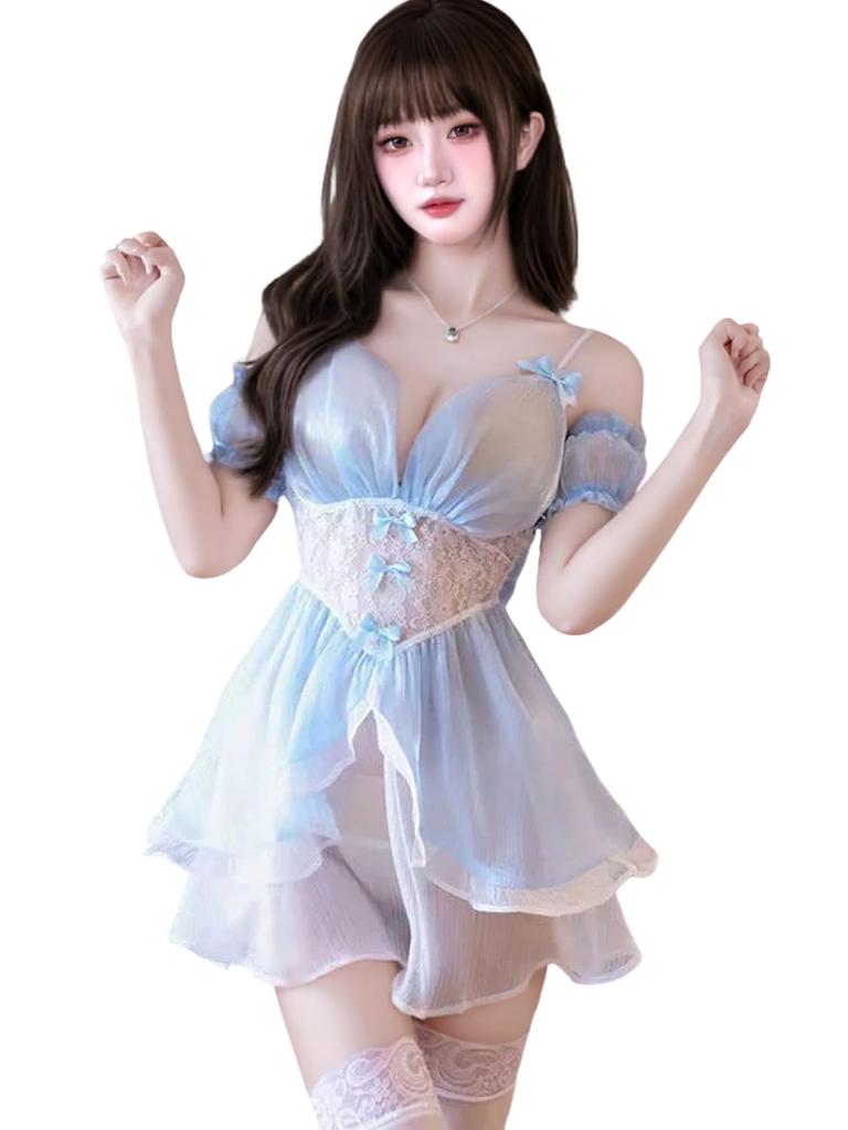 SENMHS Sexy Maid Lolita Ruffled Princess One for Costumes and Events Costume, Style, Babydoll, See-Through, Camisole, Style, Women's Costume, Blue,