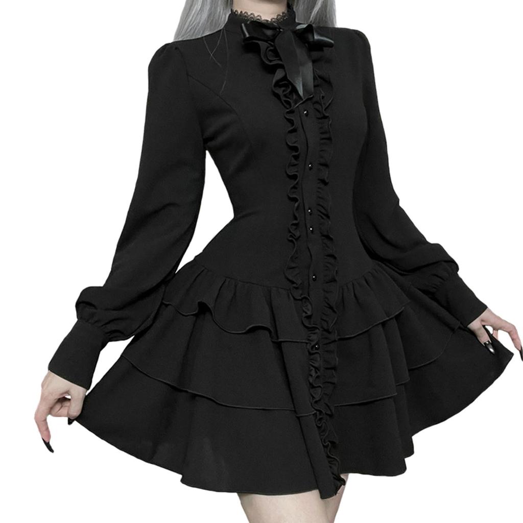 KLGIRL Gothic Black Gothic Halloween and Yami Mini Sweet Retro Stage Size L Dress, Cosplay, Lolita, Costume, Dark, Harajuku, Kawaii, Dress, Lolita,