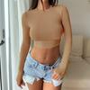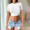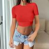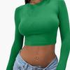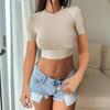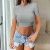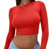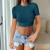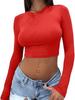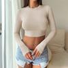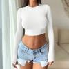 Spice Girl Solid Color Crew Neck Long Sleeve Button Top Slim Short Sexy T-Shirt Women