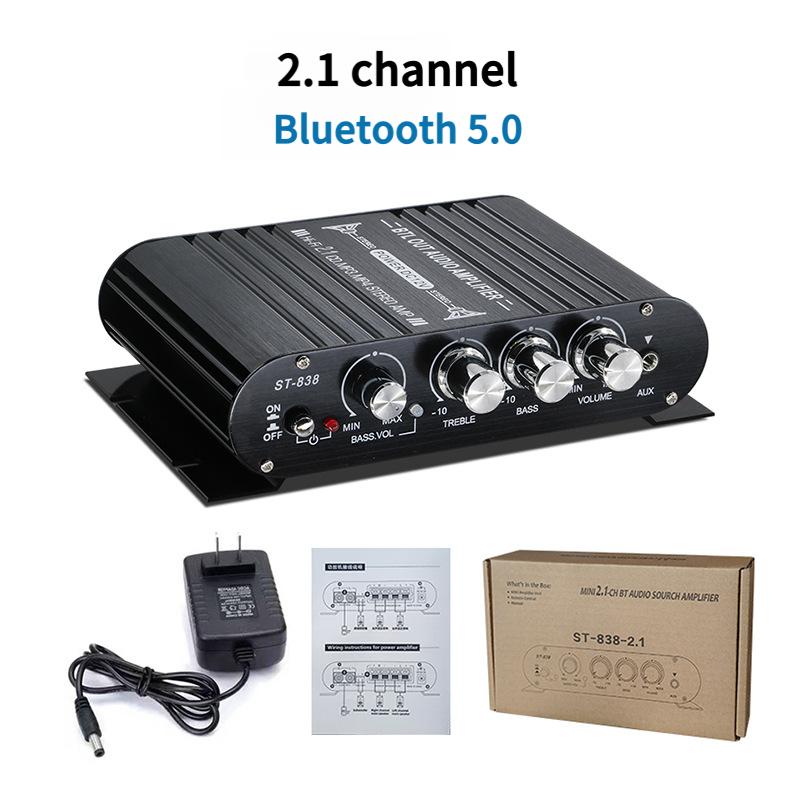 ST-838 2.1 Channel HiFi Power Amplifier, Low and High Frequency Adjustment, 80W * 2 Stereo Sound Amplifier, Mini Multimedia Play