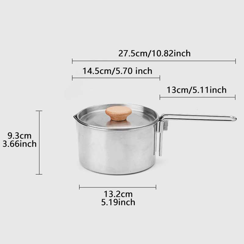 1L 304 Stainless Steel Camp Kettle Portable Outdoor Camping Pot with Removable Foldable Handle for Outdoor Cooking Campfire