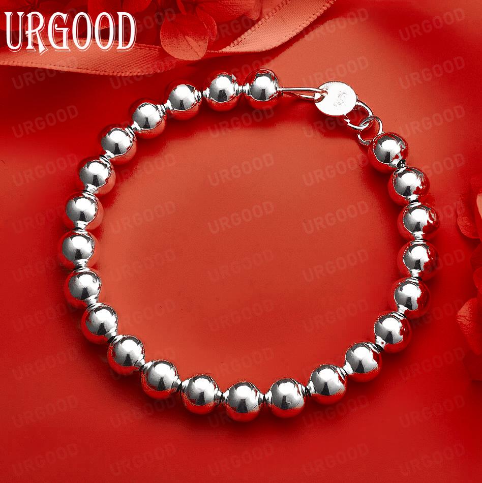 925 Sterling Silver Wedding Jewelry 8mm Beaded Chain Bracelet