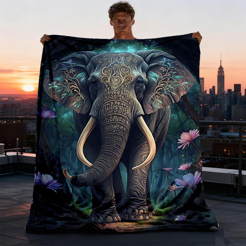 1pc Ornate Elephant Design Throw Blanket Polyester Fiber, Lightweight Flannel, Soft & Warm, All Season Use for Outdoor, Camping Digital Print