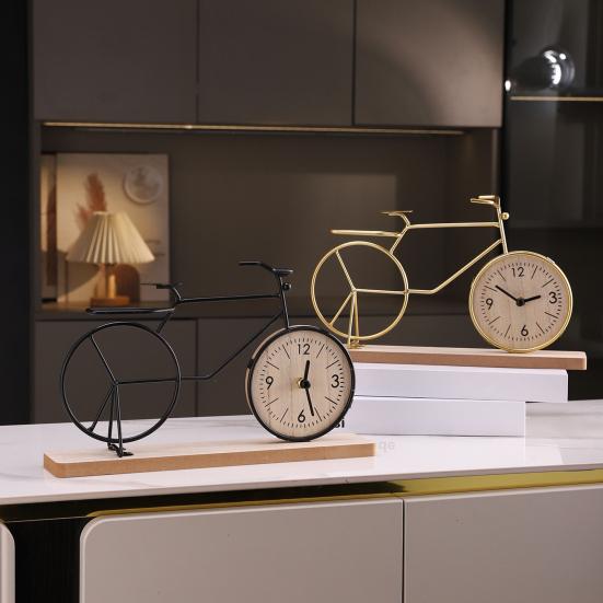Its creative bicycle shape cleverly integrates the clock mechanism into an eye-catching art piece, breaking away from traditional designs. The stable wooden base ensures secure placement on desks, shelves, or entryways without tipping. Easy to install and operate with one AA battery (not included), this clock offers clear, intuitive time reading. A perfect blend of practicality and style to enhance any room's ambiance.