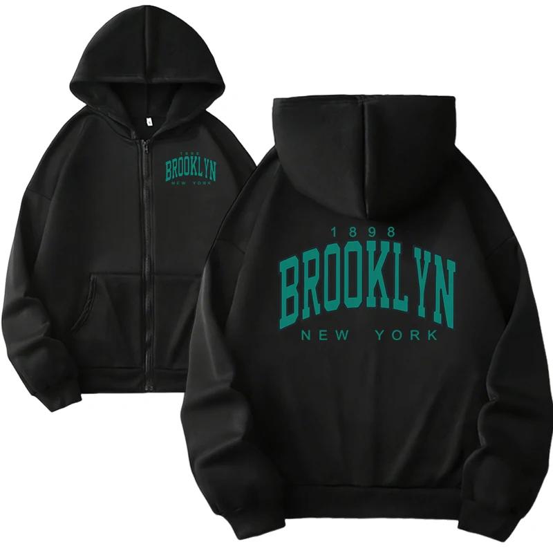 Fashion Women's Zipper Hoodie High Quality Brooklyn Print Hooded Sweatshirts All Season Female Daily Casual Sporty Coat
