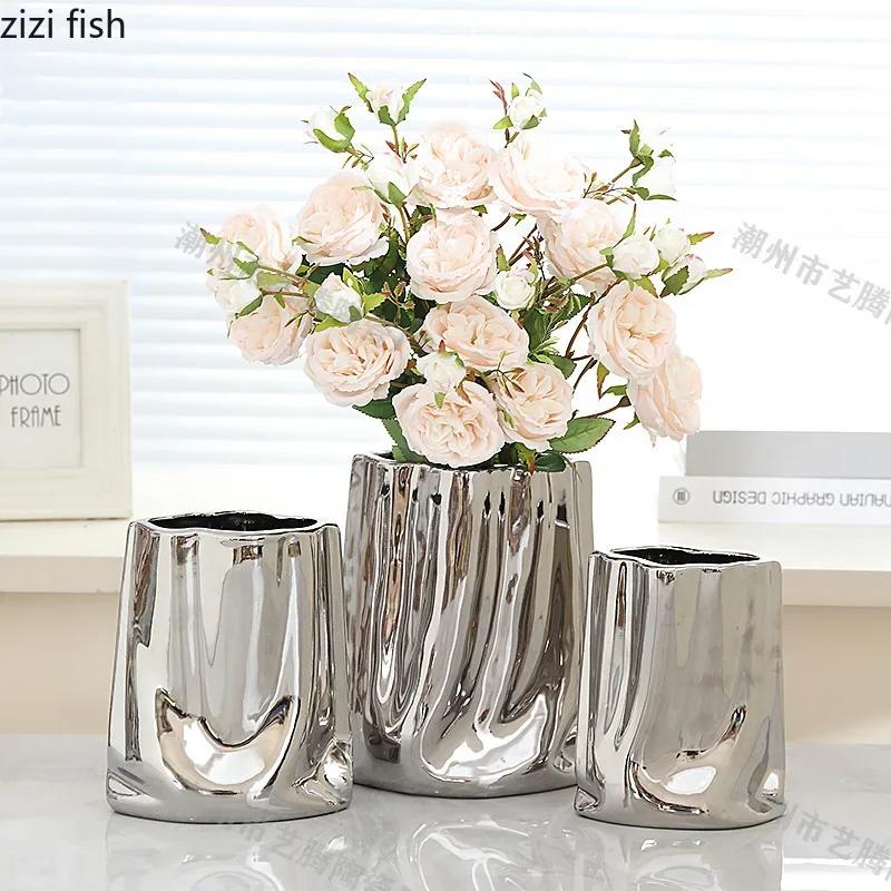 Electroplating Pocket Vase Tabletop Ceramic Flower Ware Creative Flower Arrangement Vase Living Room Aesthetic Decoration