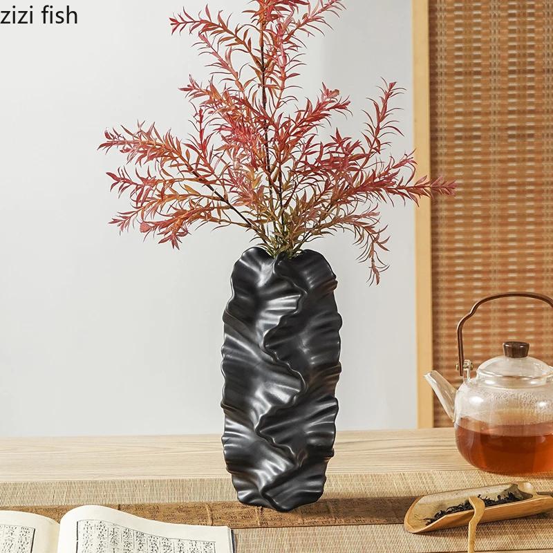 Matte Irregular Vase Ceramic Flower Arrangement Vase Artistic Flower Vessels Desktop Decorative Flower Ware Home Decoration