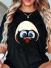European Sizes Women's Cute Duckling Eggshell Print T-Shirt - Soft Breathable Round Neck Casual, All-Season Fit for Everyday Outfits & Exercise
