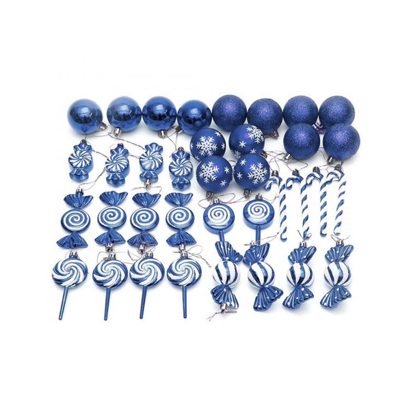 36 Stück Weihnachtskugeln, Weihnachtsbaum-Anhänger Zum Aufhängen, Bedruckte Anhänger In Form Von Weihnachtskugeln, Dunkelblau