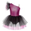 Girls Ballerina Tutu Dress One Shoulder Sleeveless Mermaid Fish Scales Print Camisole Leotard Halloween Dance Costume