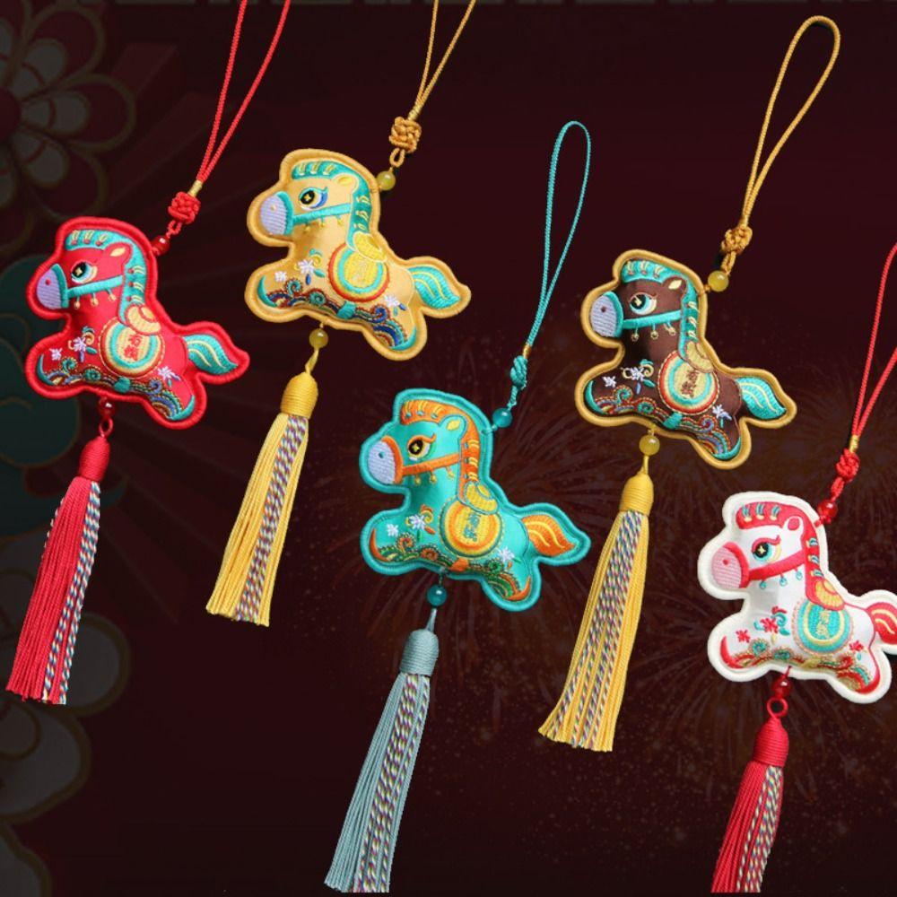 Chinese Style Pony Embroidered Pendant Spring Festival Tassel Horse Hanging Decoration Zodiac Mascot Funny Car Hanging Ornaments