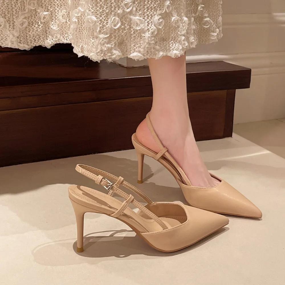 Elegant Thin High Heels Women Pumps Fashion Buckle Strap Pointed Toe Slingbacks Sandals Mule Shoes for Wedding Party