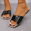 Women's Flat Slippers Summer Leather Square Toe Women Flats Flip Flops Designer Ladies Slides Sandals Women Shoes Luxury Sandals