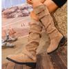 Platform Thick Heel Women Western Cowboy Boots Fashion Slip On Folded Pile Long Booties Female Shoes Autumn Winter