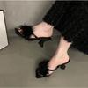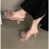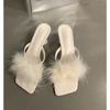New Summer Transparent High Heels Fur Slippers Women Feather Sandals Peep Toe Mules Pumps Slides Party Shoes Pink