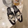 2026 Embroidery Women Mules Slippers Luxury Fashion Elegant Pointed Toe Slides Shoes Ladies Dress Flats Sandalias
