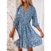 European and American New Temperament Waist and Thin Medium and Long Dress Bohemian Printing Short-sleeved Floral Dress