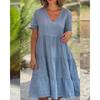 QICED Women's Fashion Summer Spring Solid Color Print Short Sleeve V-Neck Casual Dresses