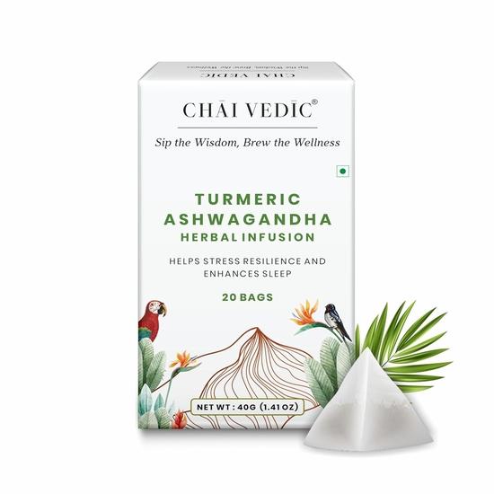 Chai Vedic Turmeric Ashwagandha Herbal Infusion Tea | 20 Tea Bags (Pack of 1)