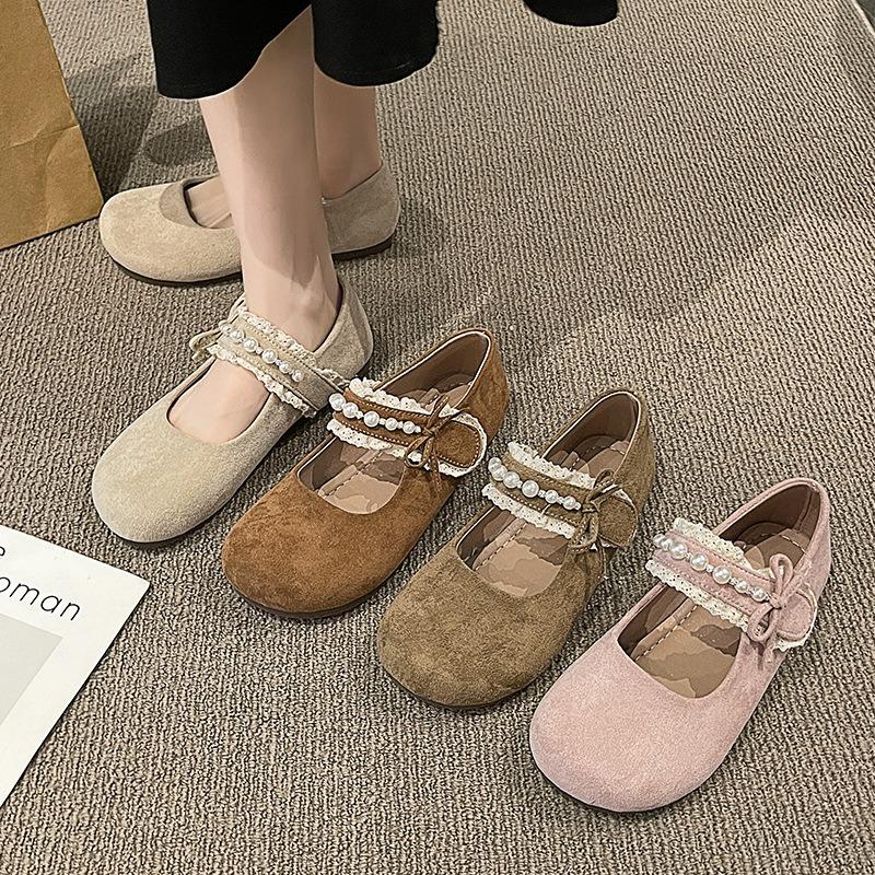 Wind Night Wear Soft Sole Night Foot Pearl Fairy Velcro Spring Mary Jane Shoes Woman Not Tired Single Shoe Temperament
