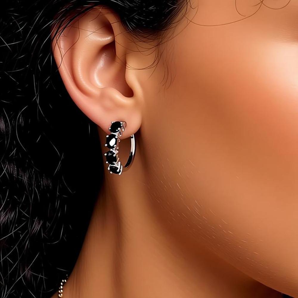 Black Awn Fashion Jewelry Classic Hoop Earrings Black Stone Hoop Earrings for Women Jewelry Gift
