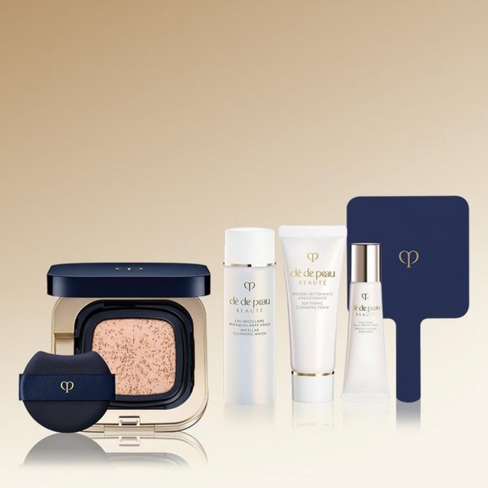 Clé de Peau Beauté Radiant Cushion Foundation Dewy Set provides a dewy finish that brightens the skin naturally while delivering coverage and hydration for a luminous look.