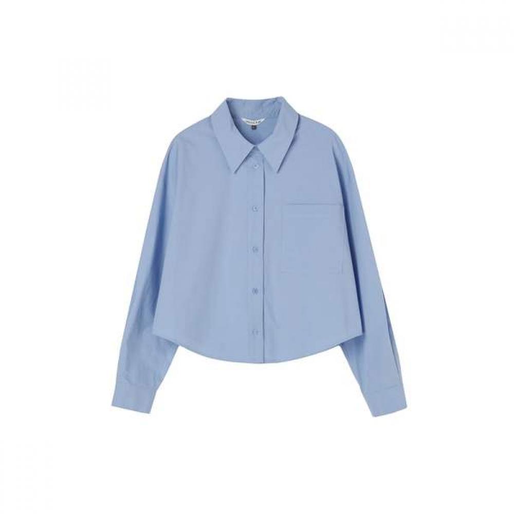 The Basic Crop Shirt AS7WB160 is a casual women's blouse designed with a basic shirt silhouette in a cropped length. It features a collar design and simple silhouette, making it suitable for daily wear while highlighting the waistline.