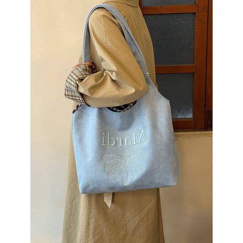 Tote Bag with Large Capacity, Single-shoulder Bag, Suede Fabric, for Commuting and Casual Wear.
